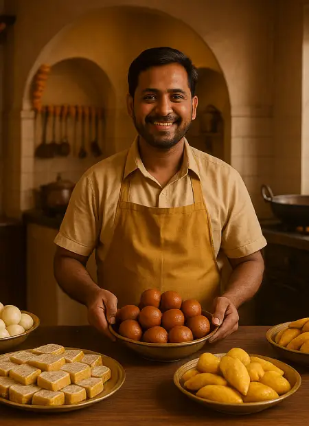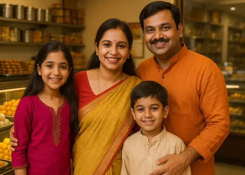 Originally from Ballygunge, Kolkata, Bhavesh now calls Edison home. He studied engineering at Jadavpur University, then moved to New Jersey in 2015. When not in the kitchen, he’s teaching his two daughters the art of rolling perfect Rasgullas, while his wife Paromita—who handles social media and packaging design—makes sure each box looks as beautiful as the sweets taste.